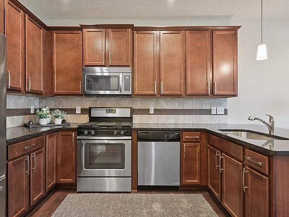 Picture-Perfect Townhome in the Heart of Maple Grove's Central Park Neighborhood. Don't miss this rare opportunity to own a beautifully maintained two-story townhome in the highly sought-after Central Park community of Maple Grove. Designed with quality and comfort in mind, this home features an open-concept floor plan with nine-foot ceilings, hardwood floors, a chef's kitchen, and high-end cabinetry throughout. The vaulted primary bedroom offers a cozy retreat with a walk-in closet, fireplace, and built-in shelving. A spacious upper-level loft includes a built-in desk/workspace-perfect for a hoe office or study area. The upper bathroom features a double vanity and tiled shower/bath, and the convenience of upper-level laundry adds to the ease of everyday living. Step outside to an oversized second-floor balcony that provides a great place to escape, read a book or enjoy morning coffee. This location is amazing within walking distance to Arbor Lakes' shopping, dining, trails, and with easy access to major freeways