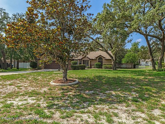 The Seller will pay 5000 of the Buyers Closings costs and pre-paids !! This Stunning Three Bedroom, Two Bathroom, Pool Home built by Pine Aire Homes is Gorgeous and has been lovingly maintained by the original owners. Brand New 30 year three dimensional shingle roof just installed June 20,2025. The Home is conveniently located just ten minutes from the Vetrans Parkway in Rainbow Hills Estates making for an easy commute to Wesley Chapel, Tampa or St Pete. Rainbow Hills Estates is a beautiful community that offers an optional HOA and is located in a no flood zone. The Home offers an exceptional blend of comfort and elegance. Nestled on a beautifully landscaped 1/2 acre lot, the home features a long driveway that provides ample parking and beautiful curb appeal. Inside, you'll find gorgeous tile and laminate wood flooring throughout, leading to a spacious living room illuminated by a skylight. The Spacious Kitchen is a chef's dream, showcasing real wood cabinets, abundant counter space, and a custom built pass-through that connects to the living room. There is a cozy wood-burning fireplace with a custom made brick front that adds charm to the space. The master bedroom is a luxurious retreat, complete with laminate flooring, a large walk-in closet, and a master bathroom featuring a relaxing Jacuzzi tub, a separate step-in shower, separate commode and a beautiful solid wood vanity with lots of storage space. The Home also boasts a breakfast nook with a gorgeous inverted tray ceiling and bay windows that overlook the picturesque, fenced in half-acre backyard, complete with a shed. You will love the stunning pool featuring a relaxing waterfall. Imagine spending your summer days, relaxing by the pool, dining poolside and enjoying time with friends and family and having fun. The backyard is great for family barbecues, games of tag, playing kickball, soccer or simply enjoying the beautiful Florida sunshine. Adjacent to the pool is a generous Florida room, measuring 23.5 X 10.4 equipped with sliding glass doors that create a seamless indoor-outdoor experience. This room is vented for A/C and Heat making it the perfect space to have a Home Office, Home Gym, Man Cave, Pool Table, Home Theatre or a Playroom for the kids. The Formal Dining Room is lovely with beautiful bay windows overlooking the front of the home. There is a large inside laundry room complete with a sink and solid wood cabinets for all your storage needs. Guest bedroom one is spacious with a walk in closet. The second bedroom is open and bright and also features a large closet. There is a convenient pool bathroom with a tub-shower combo and beautiful solid wood vanity with dual sinks. The home's amenities are rounded out by a newer hot water heater 2017, an irrigation system to maintain the lush lawn, and gutters for added protection. This well-maintained, home truly exemplifies comfort and style, perfect for both relaxation and entertainment. The home is located close to Hospitals, Doctors, Schools Shopping and Dining. You can enjoy nearby attractions like Weeki Wachee Springs, Pine Island and Hernando Beach. This elegant and beautiful pool home is priced to sell very quickly for only 352,900.