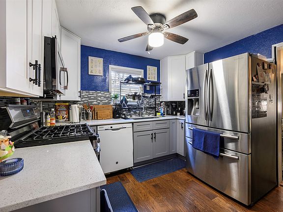 Large backyardHardwood floorsStainless steel appliancesGas cooktopCozy porchRemodeled kitchen