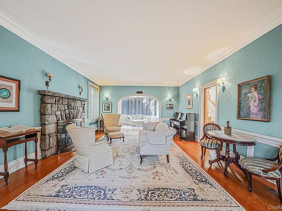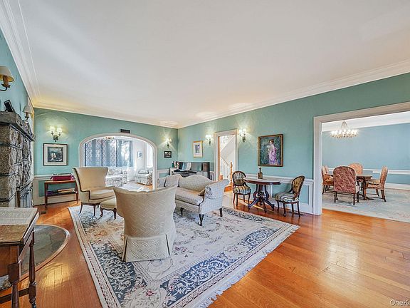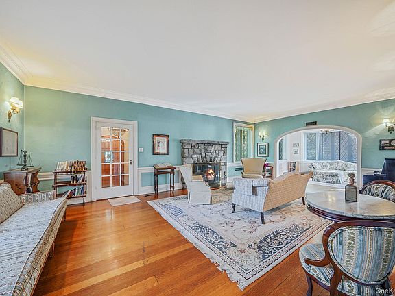 Inside, the home welcomes you with a gracious living room featuring a striking stone fireplace, rich hardwood floors, and arched doorways that enhance its traditional character. The grand formal dining room offers the perfect setting for entertaining, a family room and kitchen with breakfast area. A bedroom with a full bath and a powder room complete the first floor.