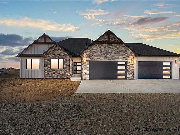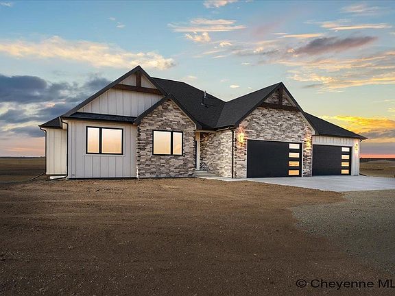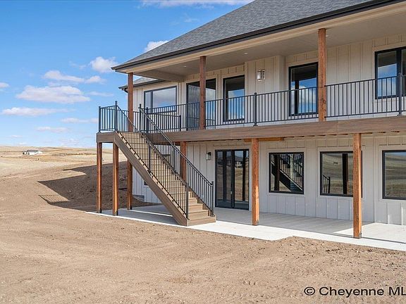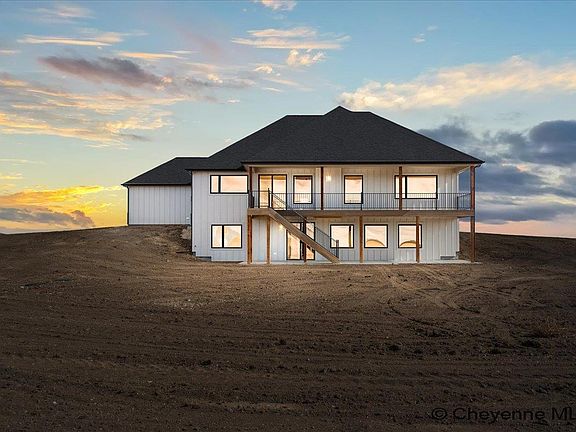 Fabulous new construction by Arrowhead Homes. This beautiful quality built ranch style home with a walkout basement and 42ft covered deck sits on 5 acres with expansive views of the Laramie Range & the Rockies from the entire back of the home. As with all Arrowhead homes you can expect high end custom designed finishes, lots of big windows, with 8ft sliding doors and a commercial grade 36" Z-line appliance package. This home is Arrowheads Bullet Point plan with a big master suite, beautiful kitchen with an 8ft window in front of the sink, a large island & walk in pantry. Separated drop-zone, laundry & half bath conveniently located off the generous (43x27) 4 car garage. Natural gas & high speed internet. Desirable NW location minutes from town at Roundtop Ranch Estates. Visit builders website for floorpans & photo gallery homesbyarrowheadwyo.com