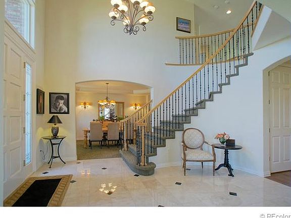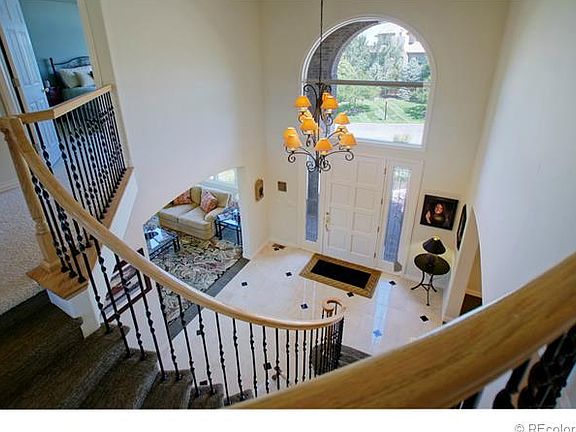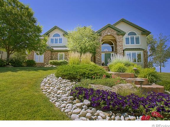 A wonderful custom home perched high in Lone Trees sought after Heritage Estates; The location offers a perfect blend of mountain views and the picturesque 253 acre Bluffs Park; atop the park are breathtaking 360 degree views of downtown Denver and the front range, This Johnson & Sons constructed home features high quality finishes and craftsmanship throughout and will not disappoint! The spacious and sunny breakfast nook with expansive views and the adjoining gourmet kitchen with stylish slab granite are sure to please, The master suite is huge and luxurious with a stylish fireplace and a spacious retreat/sitting area, The professionally designed walkout-level home theatre has stadium seating. Living adjacent to the huge park will be sure to evoke feelings of COUNTRY and SOLITUDE. The occasional morning viewings of mule deer grazing by the meandering park trails will just add to the experience. The loop trail stretches out to 2.7 scenic miles with views all the way!
