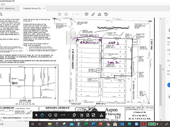 Fabulous opportunity to build your own home(s) on level, close to Three Quarters acre lot(2 parcels) in Tacoma. Set back off main Rd. Vacant land current zoning for single family. Survey complete and corners staked. Parcel 030 & 040 - approval to connect to existing sewer stubs. Power, water and sewer available. Great location, just minutes to freeway, schools, fitness, shopping, mall, golf, etc...