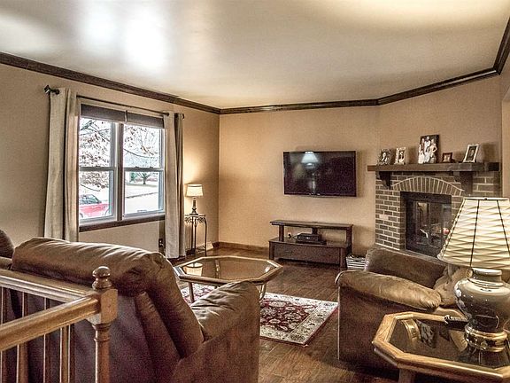 Spacious, well maintained 5 bedroom home on .71 acre lot. 2610 sq ft of living area on a mature lot. Enjoy nature from the kitchen and dining room windows and large deck. Wonderful floor plan with two complete living spaces. Lower level kitchen, family room that walks out to patio, 2 bedrooms and full bath. Would make a great master bedroom. Main level has newer hardwood flooring throughout the great room and bedrooms. Cozy corner wood burning fireplace in living room open to eat in kitchen. Updated kitchen has tile flooring and backsplash, solid surface counter tops and door leading to deck overlooking the large yard with mature trees. Updated bath with double sink vanity, solid surface counter tops, and tub/shower with new surround. Plenty of storage with large 2.5 car garage, numerous closets and two sheds. Home warranty included.