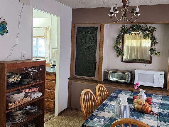 Double wide manufactured home in a mobile home park. No age restrictions! 1296 sf, 3 bedrooms, 2 full baths. Indoor laundry, primary bedroom with bath. Large lot, covered patio, car port and a storage shed.