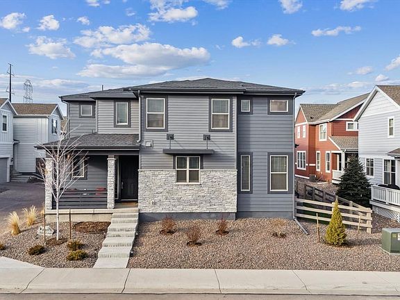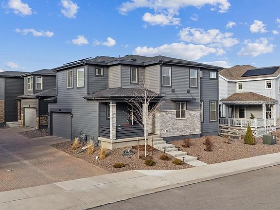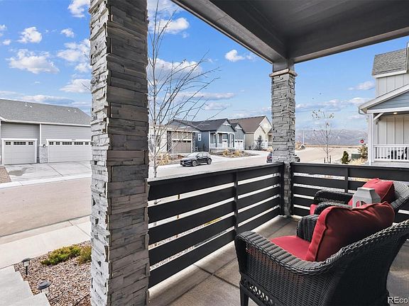 Welcome home to zero-maintenance contemporary living in this stunning 2-story home in the sought-after, Sterling Ranch. Beautiful upgraded vinyl plank flooring, tall ceilings, and a custom accent wall greet you in the foyer and unfold to a spacious great room, ideal for entertaining. Abundant sunlight in the living and dining areas which are just steps from the well-appointed kitchen. The kitchen features an oversized center island, granite counters, white cabinetry, and a stainless-steel appliance package. Step outside to a large, covered deck to dine al fresco in the warm summer months. The deck leads down to a zero-maintenance lawn turf. The upper level offers private living quarters where you are welcomed by two secondary bedrooms which includes walk-in closets, a full Jack and Jill bath, laundry (w/d included), and a large primary suite. This sanctuary is complete with an ensuite 4-piece bath with Carrera tile and a large walk-in closet with a custom closet system. Additional features of this turn-key property include a fully integrated smart home technology system, an attached 2-car garage, custom window covers, and a spacious crawl space for all your storage needs. 8403 Rush Creek is steps away from neighborhood community club house, fitness center, pool, and the Sterling Center – coffee shop/bar which offers endless community events throughout the year (trivia nights, bingo, live music, photos with Santa, kid’s events, food trucks, and more!). The new elementary school and future library will be within a mile of your front door. Do not hesitate to see what contemporary zero-maintenance living is all about, book your showing today!