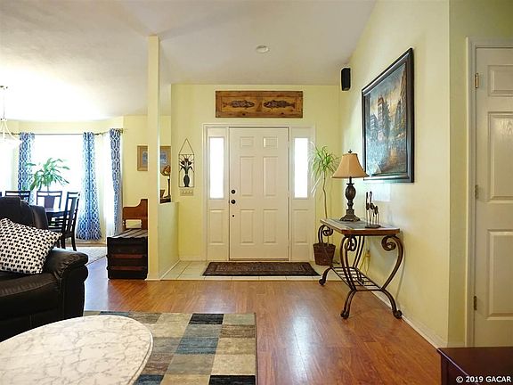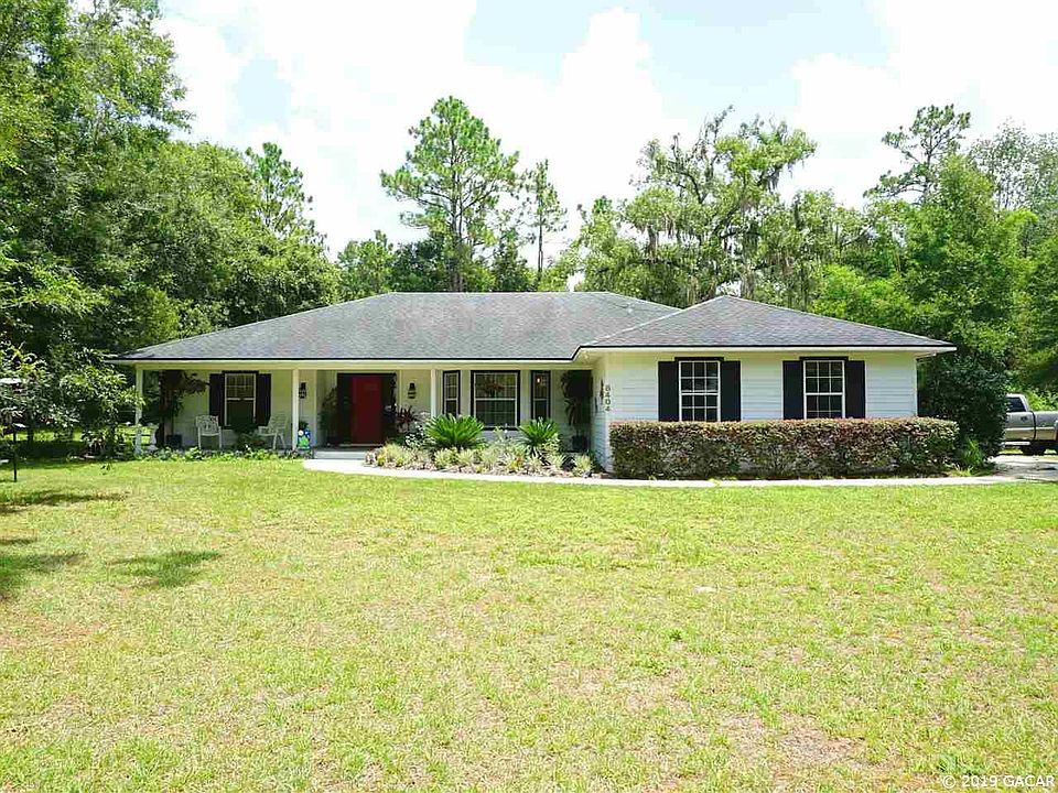 Would you like a lovely 3 bedroom 2 bath, 1882 SF home on 1.54 Acres just minutes from UF, Shands, Celebration Pointe and Publix with NO HOA or GRU? Then this is the perfect home for you! This home features a large front porch perfect for rocking chairs, a spacious living area with brick accented, wood burning fireplace, separate dining room, and a large kitchen with stainless steel appliances, granite countertops, lots of cabinets, and breakfast area. The master suite includes a good sized walk in closet and master bath with dual sink vanity with a makeup area between. All beautiful laminate wood flooring and tile throughout, no carpet! The exterior includes a large screened porch and fenced back yard. There are two outbuildings, one is a 12 x20 portable storage building and one fantastic workshop/garage that is 20 x 36 on a concrete slab. Utilities are low with Clay Electric and well! Don't miss seeing this one.