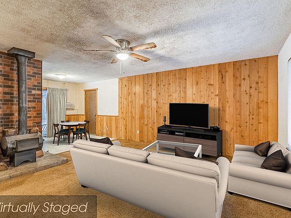 Mountain getaway nestled among the towering pines! Inviting porch leading into this 3 bedroom, 2 bathroom home with indoor laundry & an attached garage. Cozy wood stove to enjoy during the cool winter nights. Ceiling fans throughout & mirrored closet doors in the master. Fenced with a gated entry. Relax on the deck & watch the snow fall. RV/boat parking & located on half an acre!