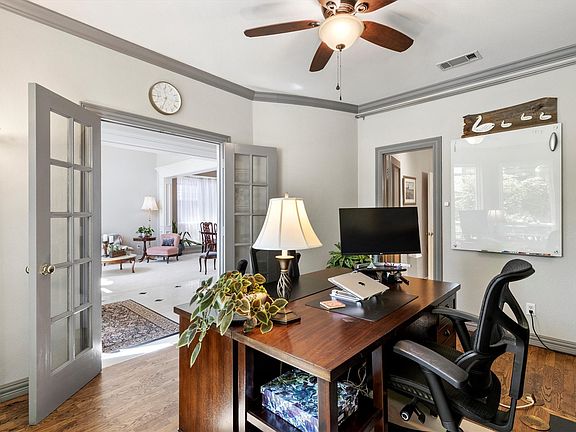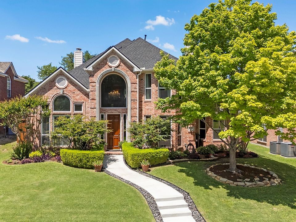 This home is built for BEAUTY AND FUNCTION, nestled in quiet, desirable Russell Creek Estates. Welcome to this well maintained 3 bed, 3 bath home, with the perfect blend of comfort, style & outdoor living. Built by Huntington Homes & still looks like a model! Dramatic vaulted ceiling entry way leads you inside this home LOADED with upgrades. Inside, find a light filled formal living & dining room with sparkling chandeliers, including a 2-sided fireplace with access to the family room. Beautifully appointed Home Office Suite (or 4th BEDROOM) has walk-in closet & fireplace (with 3rd full bath). Plantation shutters, freshly refinished solid oak hardwoods, & custom drapes throughout. Modern kitchen has been updated with designer light & fan, quartz countertops, under cabinet lighting, double ovens, built-in microwave & new gas range. Each bedroom offers generous space & storage with the main floor primary suite having remote control Hunter Douglas shades while boasting a luxurious bathroom with soaking tub, separate shower, his & hers walk-in closets, & double-sided fireplace. The exterior is a gardener's DREAM with auto irrigation systems for the flower beds, compost bin & rain barrels. Enjoy the best of outdoor living in your private backyard retreat with gas grill hook up making entertaining a breeze. Highly energy efficient windows with tinting & a full solar system including solar powered roof fans & radiant barrier attic (seller saves approx. $400 - $600 per month). Voluntary HOA is grandfathered in. The neighborhood has so many amenities to offer including Russell Creek Park & pond, numerous biking trails, 2 community pools, small clubhouse, tennis & basketball courts, playgrounds. Award winning Plano ISD with elementary and middle schools within walking distance. Very convenient to major highways including 121, 75 and the DNT as well as many restaurants & shopping. Offering convenience and tranquility, don't miss this opportunity to call this your forever home!