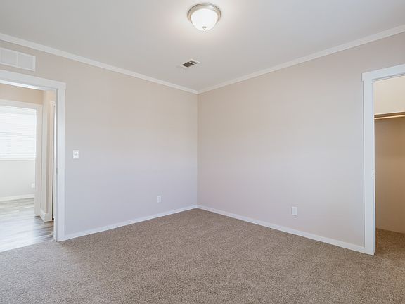 Absolutely Beautiful! This 3-bedroom, 2-bath home combines modern features with functional design, perfectly situated in a quiet cul-de-sac. The stylish kitchen offers granite countertops and a pantry with a sliding barn door, while the open layout flows seamlessly into the living and dining spaces. The primary suite is a true retreat, showcasing a large tiled shower, massive soaking tub, dual vanities, and a dedicated vanity space. Each bedroom includes its own walk-in closet, with carpet only in the bedrooms for added comfort. The laundry room features a versatile craft area or office space, adding even more convenience. With thoughtful touches throughout, this home is designed to fit your lifestyle beautifully.