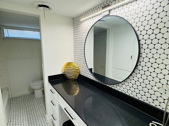 Modern light fixturesUpdated tile workFresh neutral paintHardwood floorsRich wood flooringCeiling fansGranite counters
