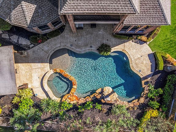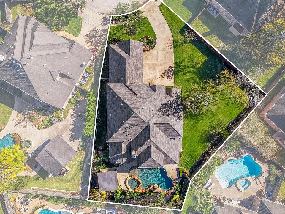 Stunning Highland Home perfectly positioned on over 1/3 of an acre at the end of a cul-de-sac with pool & spa—perfectly blending indoor & outdoor living. Major improvements include a 2024 Roof, Kohler Whole-Home Generator, New Fence (2024), Dual AC Units & Furnaces (2022), Outdoor Ceiling Fans, Updated Lighting, & Wine Bar.Custom hand-scraped hardwood floors flow through the main living areas. The GORGEOUS primary bath renovation features a copper-nickel claw-foot tub, marble counters, & an oversized frameless shower with bench. Thoughtfully updated with rich Benedettini cabinetry, granite counters, and built-in stainless appliances, the open-concept kitchen flows beautifully into the family room with custom built-ins & a stone gas-log fireplace. The floor plan includes both a formal sitting room & dining room, a study or first-floor guest suite, a spacious game room with balcony, and separate media room. Walking distance to Scanlan Oaks Elem, Zoned to Thornton MS & Ridgepoint HS!