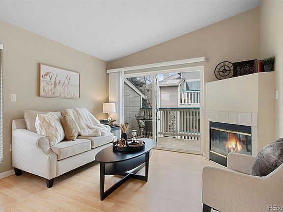 Great opportunity in Canyon Ranch! PRICE IMPROVEMENT!!! Immaculate second-floor, end unit condo in the desirable gated community of Canyon Ranch with a Carport! This open and airy condo features laminate floors, vaulted ceilings, and abundant natural light. The kitchen, open to the family room, combines style and functionality with stainless steel appliances, slab granite countertops, gas range, a stainless-steel dual sink, and ample cabinet space. The eat-in kitchen area, surrounded by windows, fills the space with natural light. Relax in the family room by the cozy gas fireplace and high vaulted ceilings or enjoy the private balcony through the expansive glass sliding doors. The spacious primary suite offers a peaceful retreat with vaulted ceilings, a generous walk-in closet, and a private ensuite bath featuring dual sinks, a built-in linen pantry and a large soaking tub/shower combination. The second bedroom is also spacious and features 9-foot ceilings and closets that expand the entire wall and the guest bath is located right outside the bedroom door. Additional highlights include a laundry room with shelving (washer and dryer included), a storage room off the balcony, and a conveniently located carport nearby. A new hot water heater was installed in 2022 and brand-new carpeting in February of 2025! As a resident of Canyon Ranch, you'll enjoy exclusive access to a private community pool and all the outstanding amenities of Highlands Ranch, including four state-of-the-art recreation centers, vibrant community events, farmers markets, live concerts, and an extensive network of 22 parks and 70 miles of scenic trails. QUICK POSSESSION POSSIBLE!