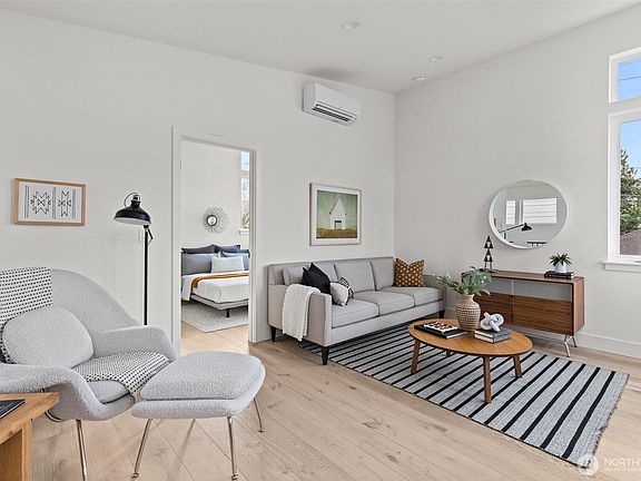 Contemporary design and quality craftsmanship define this stand-alone 3-bedroom DADU delivering light, volume, and privacy. Vaulted ceilings and real hardwoods set a warm tone for the open living and designer kitchen featuring Belmont cabinetry, quartz surfaces, induction range, and elegant fixtures. The primary suite boasts a walk-in closet and custom-tiled bath, complemented by two additional bedrooms and full guest bath below. High-efficiency HVAC and water systems ensure year-round comfort, with no-carpet interiors, a fully fenced private yard, and dedicated off-street parking. A rare fusion of independence, sustainability, and West Seattle charm just minutes from Lincoln Park, shops, and waterfront trails.