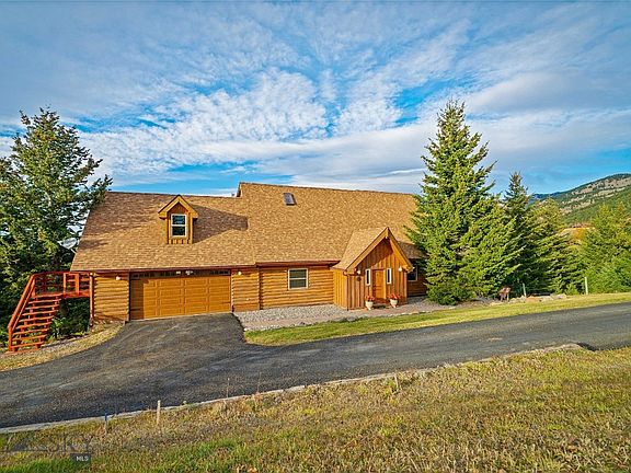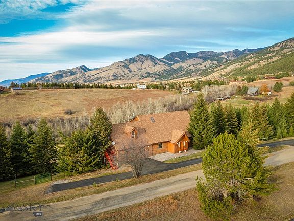 Perched on top of Bozeman, in the Bridger Foothills, sits a home that enjoys a very desirable location, coveted views, countless tall mature trees, and the flexibility of being unencumbered by zoning or covenant rules. Uniquely unique for all the right reasons, the well-maintained, lightly used home has a familiar warmth balanced with an uncomplicated elegance and offers over 3000 square feet, which includes up to 4 bedrooms, 3 full bathrooms, a family room/rec room, office areas, and extra room for play, storage, guests, or anything else someone might need. The main living area is open, with tall ceilings, a well-appointed kitchen, huge windows that flood in natural light and Bridger views, all anchored by a custom stone, wood-burning fireplace. The downstairs family/rec room is currently roughed in to have a full kitchen, which could be a separate place for guests or a perfect generational family property. The 2.5+ acres meander gently down to a tree-protected creek that trickles out of the Bridgers, providing a well-established wildlife corridor, which offers countless stress-free evenings, sitting on the back deck and watching some of Montana's majestic creatures roaming in their habitat. With no HOA to negotiate around, the entire lower part of the property can be left alone, used for horses or other farm animals, or even used to add a barn/shop with guest quarters if desired. The current owners are willing to let the property go furnished (excluding some personal items), allowing a buyer to instantly use the home to rent out for income with a short-term rental. This property is now ready for a new owner to enjoy or enhance as their imagination will allow them.