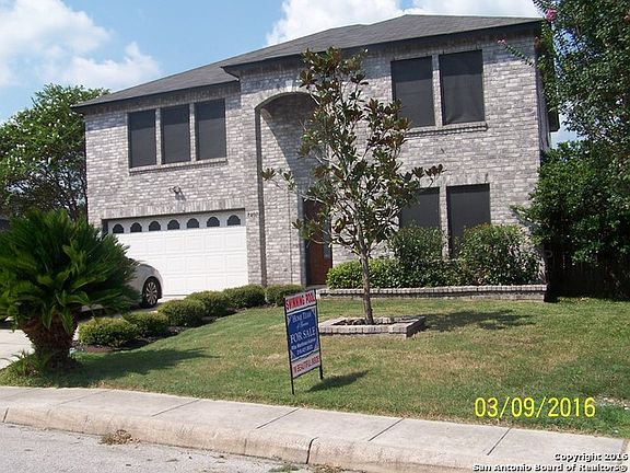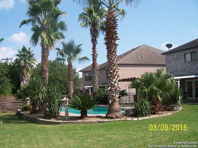 Awesome 2 story home with 4 bdrms ALL upstairs and a huge backyard with an IN GROUND POOL. Almost 2600 sq ft of lvng space. Huge master bedroom with large mstr bath suite: sep garden tub & shower stall, His and Her vanities. Ceramic tile throughout the 1st floor, open living space from Lvg Rm to Dining areas and open kitchen. Large Pantry with Utility Room. Addl storage shed in backyard. Cvd back patio, palm trees @ the pool. Great for entert. Near Randolph AFB, FT Sam Houston, BAMC & JUDSON H