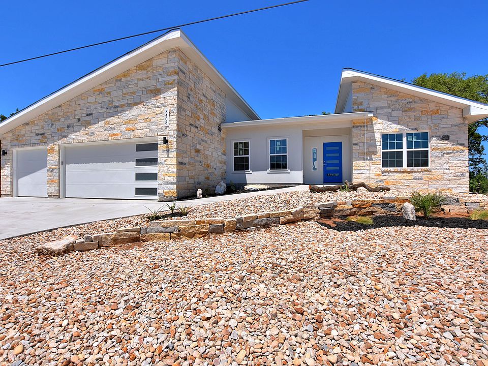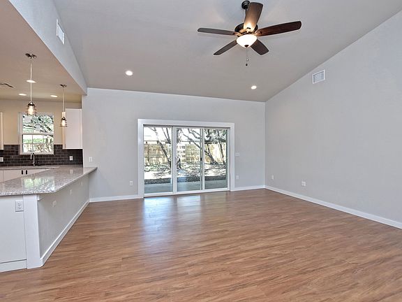 BRAND NEW CONSTRUCTION! This 1 story open concept floor plan is perfect for entertaining. The glistening white kitchen features quartz counter tops, soft close doors and drawers, GAS RANGE & built in microwave. Laminate wood floors throughout, no carpet! Three bedrooms PLUS an office/study or formal dining opens to the foyer. Large secondary bedrooms. Relax on the 150 sq ft. covered back patio w/ GAS stub out a grill. Area amenities include golf course, community pool, 9 parks, Lake Travis access.