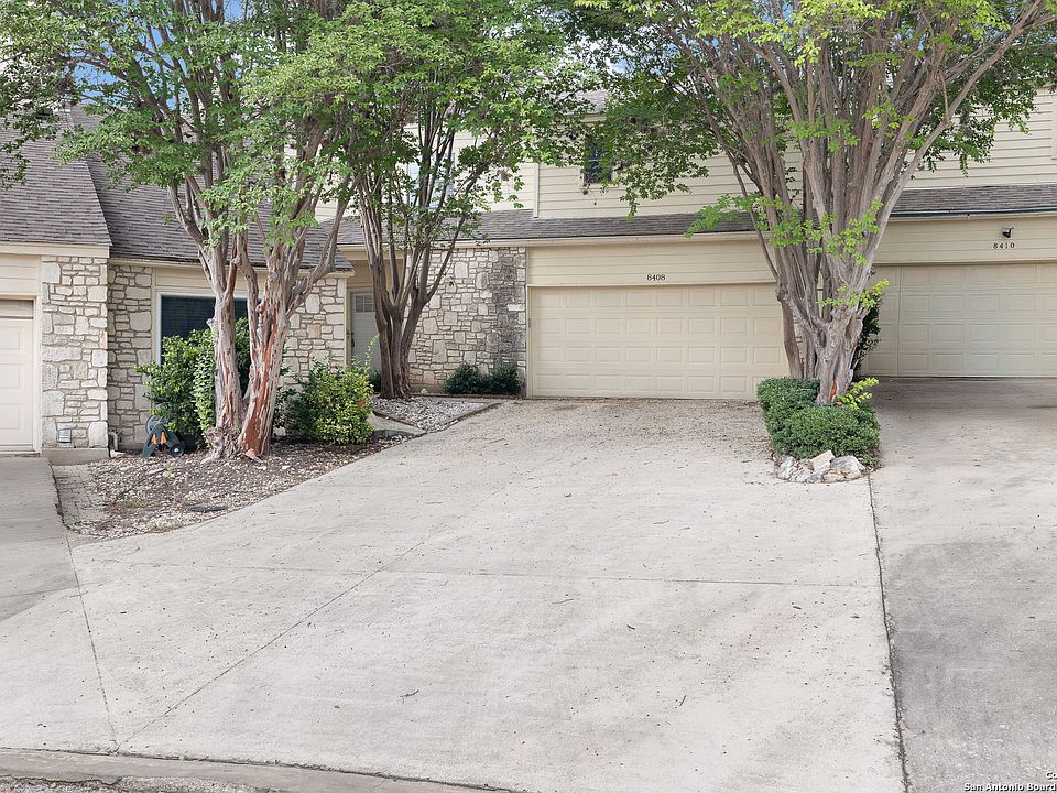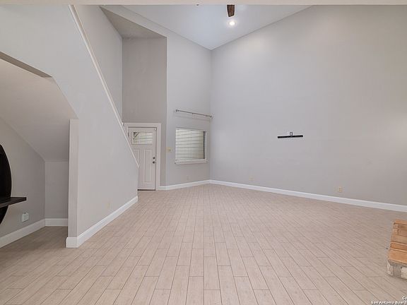 Come and see this contemporary 2 bedroom, 2.5 bath townhouse in a small gated community close to the medical center, USAA, and UTSA. On entering you'll enjoy the large space with soaring ceilings, upgraded recessed lighting, and a large stone wood burning fireplace. The modern eat in kitchen has granite counter tops with matching appliances, including the refrigerator. This home has long lasting wood-look porcelain tile downstairs, and wood laminate upstairs. No Carpet. Great location within the neighborhood and includes a large fenced backyard. A unique loft room adds versatile additional living space. The two-car attached garage for convenience and extra storage. Community amenities include a gated entrance, swimming pool, tennis and basketball courts.
