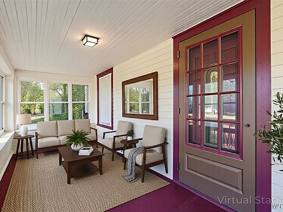 Enjoy the enclosed front porch or relax under the covered carport with concrete pad attached to the 1.5 car garage. 16' X 12' Shed with electric. The property also boasts a long driveway, comfortably fits 5+ cars. A 6 year old metal roof and full basement equipped with a sump pump, and ample storage space.
