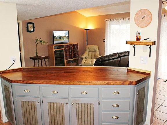 Get ready to enjoy the Florida life! This very well maintained, move in ready pool home, has three bedrooms, two bathrooms and is 1,219 sq.ft. As you approach the property from the low traffic cul-de-sac road, you will notice the over sized yard with room on the side for your boat or RV and the inviting front entry area. Going through the front door you can go strait to the two extra bedrooms or the nicely remodeled extra bathroom, or you can go right into the kitchen and living room area. Walking towards the living room you will notice the vaulted ceilings and excellent views of the pool area through the windows and sliding glass doors. Back in the updated kitchen, you will find an island with a beautiful real wood counter, made from one solid slab of hardwood that overlooks the living room and pool area. The kitchen also features brand new counter tops and back splash paired with stainless appliances. In the master bedroom you will find sliding glass doors leading out to the pool area and an updated master bath with a walk in shower and farm sink. Headed out side to the pool area you will find a screened concrete pool area and a refreshing newly surfaced pool to splash around in. The pool area is surrounded by well managed plush vegetation, giving lots of privacy. The huge fenced in back yard oasis has a plentiful mixture of tropical plants, trees and vines with sitting areas all over. Don't let someone else relax in the oasis that could have been yours, schedule an appointment today.
