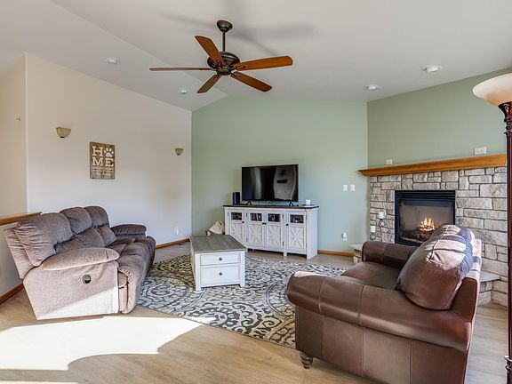 This beautiful updated open concept Majestic Hills ranch has all the extras. New luxury plank flooring & carpet thru-out. Vaulted great room with gas FP. Gourmet custom kitchen features custom cabinets with pull-outs, large island, farmhouse sink, quartz counter tops & subway tile back splash. Nice pantry & SS appliances. Sunny dining area with patio door. Primary bedroom with walk in closet and private en suite. 3rd bedroom opens up to an awesome vaulted family room addition with beautiful wall to ceiling FP, second patio door & private court yard! Completely fenced yard with patio & shed. Close to bike trail, pond, nature preserve & dog park! 2 car attached garage and brand new concrete driveway! Welcome Home!