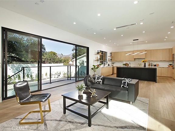 Nestled in the picturesque foothills of South Sunland, this modern masterpiece offers an unparalleled quality of build and design. Upon entry you are captivated by the dramatic oversized steel entry door leading to the breathtaking foyer with soaring ceilings. The inviting open concept living room is highlighted by an impressive wall of dual sliding glass door panels, seamlessly connecting the indoor and outdoor spaces. The living room features a media wall with a stylish linear fireplace, and a hidden niche for discrete placement of electronics. The home is wired and ready for surround sound to create an immersive entertainment experience. The living room flows into a dream kitchen with an extensive amount of custom soft-close cabinetry, expansive quartz countertops, and the heart of the home, a grand waterfall edge center island. Appointed with premium stainless steel appliances, including a 5 burner induction cooktop, convection oven and microwave with smart features. A sleek glass walled staircase ascends to a versatile loft perfect for an office, study/play room or 2nd living area. A thoughtfully placed upstairs laundry room is on everyone's list. The primary suite offers a private balcony overlooking the backyard and pool with tranquil views perfect for relaxing with your morning coffee or sunset cocktails. A luxurious spa-inspired en-suite bath designed for ultimate relaxation, with dual shower-heads, a free-standing soaking tub and private water-closet. The gorgeous walk-in closet is astutely placed and custom-designed for optimal organization. The backyard oasis is highlighted with a sparkling heated pool in a pebble finish, a Pentair IntellifFlo system and integrated customizable illumination. The extensive list of thoughtful details put into the build and design of this home include an Energy Recovery Ventilator improving indoor air quality and energy efficiency, pre-installed solar system with wiring for dual electric car chargers, and an impressive black glass panel garage door with a soft-close LiftMaster opener. Minutes from Jack Nicklaus-designed Angeles National Golf Club, easy access to hiking and biking trails, and convenient access to DTLA, Pasadena and Glendale offers both accessibility and tranquility. This brand new modern masterpiece is a rare opportunity in one of Sunland's most sought-after neighborhoods. The perfect blend of luxury, sustainability and proximity to nature for those who insist upon excellence!