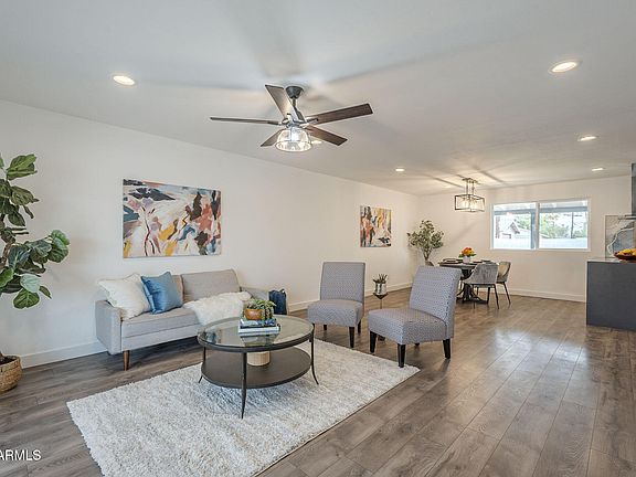 Fully renovated Cox Heights home at a FABULOUS price! Gorgeous kitchen w/white shaker cabinets, 42'' upper cabinets, quartz countertops, updated lighting + plumbing fixtures, bar space for countertop eating + gorgeous backsplash ~ Cozy great room space creates open living + dining rooms w/ceiling fan ~ Fully updated, stunning bathrooms ~ Bathroom updates include shower tile, tub, vanities, plumbing fixtures, light fixtures, flooring, toilets, mirror + towel bar accessories ~ Bedrooms updated w/glass sliding closet doors, light fixtures + flooring ~ Whole house has dual pane windows + updating flooring ~ Deep 1 car garage ~ Spacious backyard ~ PRIME LOCATION close to 101 Freeway + Hohokam Elementary School ~ Close to ASU, Scottsdale Community College + Downtown Scottsdale, but far enough away to avoid the traffic jams ~ Enjoy all the updates of this home at an amazing price!
