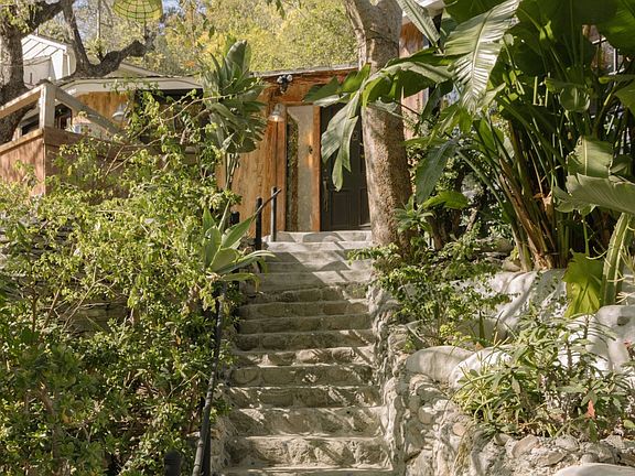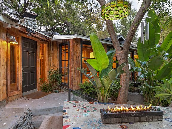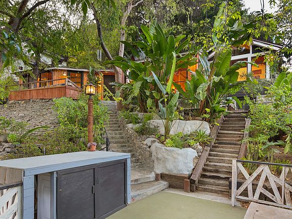 A very special 1922 original Bungalow land home, this organic architectural treehouse captures the folk spirit, bird-sung serenity of the canyon with carbon-neutral upgrades and high-end fixtures. World's away yet in the heart of the city, the home was built along the hillside, integrating indoor and outdoor flow. A Play of angles nestled among the mountain are uniform with its natural surroundings. Abundant natural light dances throughout the day by numerous skylights and windows. The master bedroom is tailored to an ancient oak tree as the en-suite bathroom boasts petrified wood and quartzite. The entertainer's kitchen is highlighted by both modern, energy-efficient appliances and vintage built-in fixtures. Converse on the tiered outdoor patios shaded by trees and detailed with mosaic tile. Muse amidst the outdoor dining area and fire pit or eclectic lofted space. Basque in the warmth of the fireplace carved by canyon spring's river rock. Escape the everyday after a yoga session on the sprawling deck with full-spa amenities; Recharge in the Earthship Meditation room, Finlandia sauna, outdoor tub shower or 4-person steam room built into the mountain. Just a few houses down from the highly-revered Wonderland Elementary and minutes from the Canyon Country Store, Sunset Blvd's world-class dining and nightlife are as accessible as your neighbors. Complete with four-car off street parking and electric car supercharger, this magical piece of old Laurel Canyon is the only true retreat you can call home. House also listed for lease - $10,000 monthly