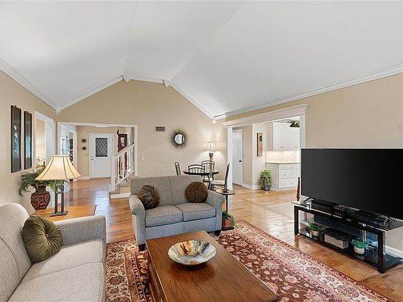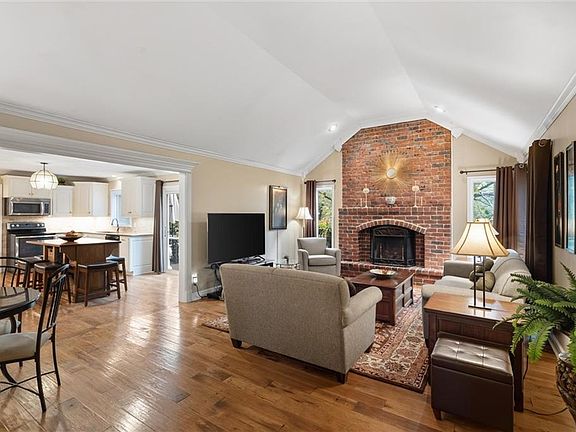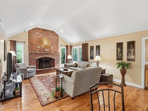 This beautifully updated 1.5-story in Greystone South has incredible curb appeal with lush, colorful landscaping, a front fountain, and pristine Hardie siding. Inside, the main level features a vaulted family room with a fireplace, a formal dining room, and a formal living room currently used as a piano room. The kitchen has been updated with white cabinetry, stainless appliances, and easy access to the powder room and laundry.