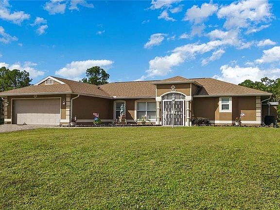 Custom pool and spa. Three bedrooms and a den, two baths and screened in enclosure for outdoor living. Impact windows and doors throughout the home. There is plenty of storage, including a large laundry, pantry, plus a two-car garage, and shed in the back. Enjoy the freedom of living in the estates on your expansive 2.27 completely fenced acres, and the convenience to Walgreens, Publix shopping. Motivated seller. Make an offer today. *Pictures are for illustration purposes and not necessarily the home in its current condition. Home needs work.