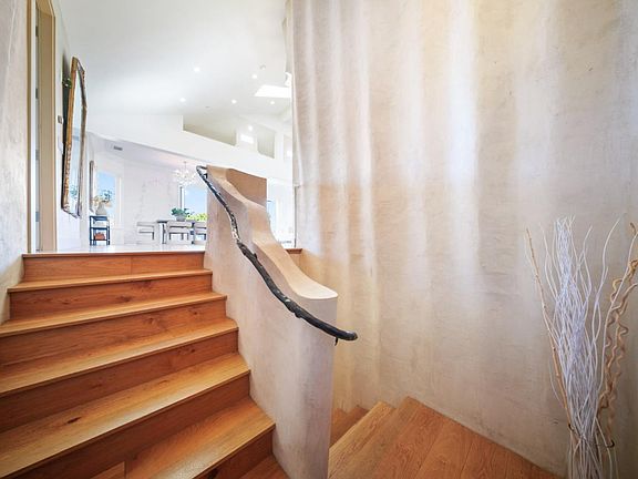 Perched on a scenic hillside with breathtaking Bay views, this home is both a work of art and a testament to craftsmanship. Built in 2020, it comes with a 3BR/4BA main home and a 1BR/1BA ADU featuring its own private entrance. Inspired by European architecture, particularly Antoni Gaudis expressive forms, the design reveals sculptural walls, vaulted ceilings, and skylights that fill every space with light. 5-panel NanaWall doors extend the great room onto a view deck, while a vaulted lounge with lantern chandeliers balances grandeur with intimacy. The chefs kitchen showcases Thermador appliances, porcelain finishes, and custom cabinetry beside a cozy breakfast nook. The primary suite is a serene retreat with a sculptural fireplace, private terrace, and spa-like bath featuring heated floors, a soaking tub, and glass shower. Crafted with quality at every turn, engineered oak floors, Alder Knotty doors, Anderson windows, solid-core interiors, and fire-resistant materials crowned by a lifetime roof, the home offers artistry that endures. Outdoor living includes a warm sunroom, a lush backyard with 30+ kinds of fruit trees, stamped-concrete drive with RV/boat parking, a 2-car garage, and a storage shed. Minutes from freeways and top schools Roy Cloud Elementary and Woodside High.