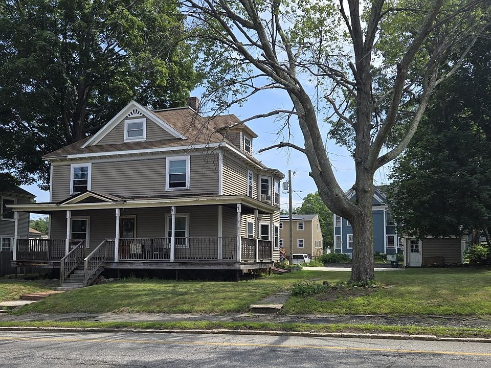 Looking for a big home? Look no further! This massive 2800+ square foot classic colonial home nestled in the North End is a must see. Newer kitchen with maple cabinetry, granite countertops and GE stainless appliances. Impressive dining room with hardwood floors, pocket doors, and original stained-glass window. Nicely appointed living room with hardwood floors & wood burning fireplace. Den with hardwood floors, ½ bath and laundry room completes 1st floor. Large primary bedroom with private 4-piece bath, walk in closet, storage area, and potential for a rooftop deck off the primary bedroom ready for completion. 2 generous size bedrooms & full bath completes the 2nd level. Need more space? Home boasts a massive 3rd floor walkup attic with large windows ready for conversion, perfect for theater room, familyroom, or whatever your imagination brings. Extensive updates completed including newer roof, windows, siding, plumbing, wiring, heating system, and hot water. Beautiful custom coffered ceilings throughout most of the home, wrap-around covered porch, detached garage. Home sits on a double lot w/nice size yard, garden area & tons of parking. With a little cosmetic updates, bring this timeless full of character home to its original old charm beauty. Rarely will you find a home of this size at this price.
