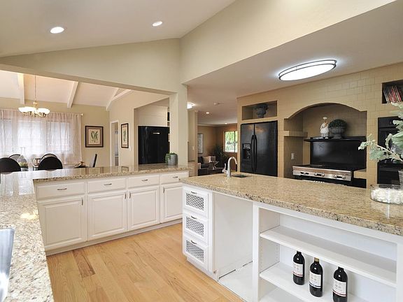 Conveniently located within about a mile of the charming Los Altos Village, this architecturally interesting home offers a main level master suite, stunning pool house/in-law suite and gorgeous hardwood floors. The gourmet kitchen has a working peninsula with sink and also an eating bar and is equipped with a professional US Range gas range plus double built-in electric ovens. There are two upstairs bedrooms and full bath in addition to three downstairs bedrooms, two baths and an office. The pool house also has a full bath and kitchen. Plenty of sunny garden space behind the garage for vegetables and flowers..