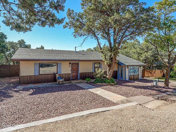 Beautifully updated single-level home on 1/2 acre with no HOA! Perfect for multi-generational living or short-term rental income. The 864 sq ft main living area features 2 bedrooms, 2 updated bathrooms, modern kitchen, and efficient mini-splits. The separate 384 sq ft guest suite includes a private entrance, full kitchen, bathroom, washer/dryer, and its own heat/AC--ideal for guests or Airbnb. A large fenced yard with mature Juniper trees offers privacy and room for RV, boat, or future garage. Recent upgrades include remodeled kitchens and baths, new windows, stucco, paint, decks with storage, insulation, and landscaping. Quiet, low-traffic street within walking distance to schools, shopping, and medical, just 5 minutes to downtown Prescott. Low maintenance, low utilities, move-in ready!