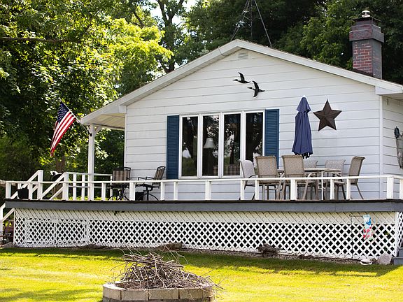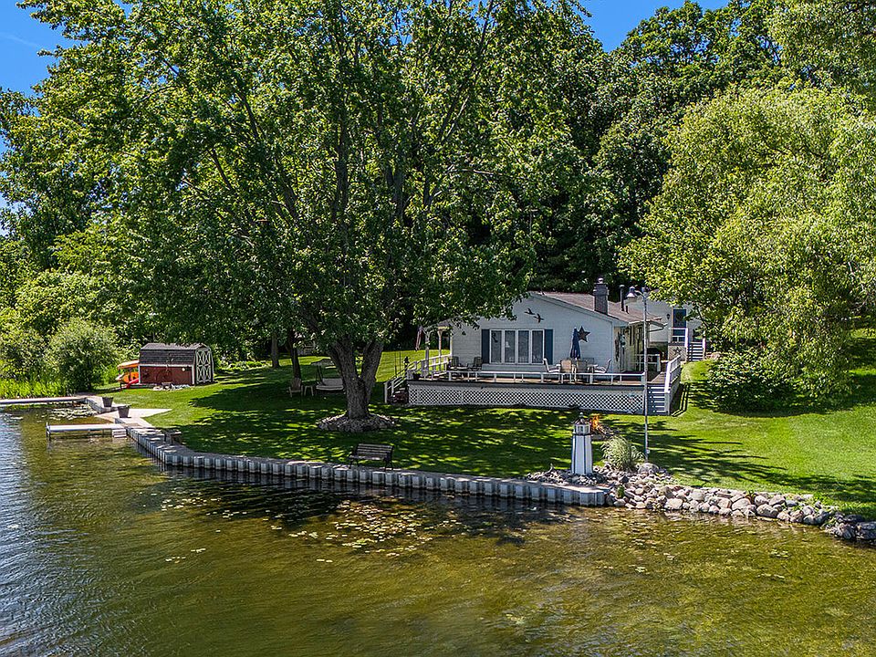 Can't decide between a cottage/home on an all-sports lake, or one on acreage? We'll make the decision easy for you...have them both! This 3 bedroom, 1.5 bath, lovingly maintained home, is situated on nearly 150' of frontage on all-sports Holland Lake AND boasts just under 10 acres with peaceful wooded trails. This 1392 sf ranch, features an open floorplan with scenic views and the breathtaking sunrises from the picture window. Spacious kitchen with snack bar, pantry and dining area overlooks the living room with cozy gas-burning brick fireplace. Down the hallway you'll find 3 nicely sized bedrooms, a large full bath with ample counter-space, and a convenient laundry, mud room and additional half bath. Relax and entertain on the large deck overlooking the lake, or go on a hike to explore the nature trails, with wooden boardwalk (hand-built by a loving Grandpa with a sense of adventure). Enjoy the convenience of the 2-stall garage, and 2 additional storage buildings, and the peace of mind of the whole home generator and newer seawall. Great private lake for fishing from your boat or the 2 docks! Don't let another Summer pass you by, this is the home for you!
