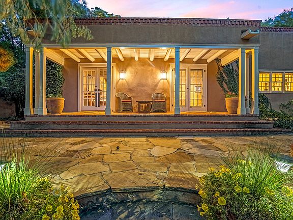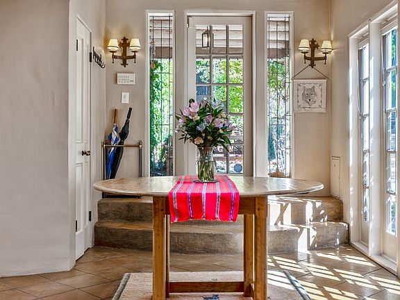 Welcome to the charming Eastside of Santa Fe, where history and beauty converge. Nestled within this enchanting neighborhood, we have an exquisite home that captures the essence of Santa Fe's rich heritage. This 4 bedroom, 4 bath residence boasts authentic Southwestern territorial architecture with traditional vigas and 5 fireplaces. With approximately 2,600 square feet of living space in the main home, there is ample room for comfortable living. The cozy living areas feature high, wood-beamed ceilings and skylights with french doors that open up onto private patios and courtyards, creating an open and airy feel. The kitchen has been tastefully updated with modern appliances while preserving its rustic charm. A private Casita with its own entrance has 1 bedroom and a 3 / 4 bathroom with a 2nd room that could serve as an office or studio. The kitchen opens up to a spacious living room with a large fireplace and grand windows that overlook the lush courtyard. There is a 2 car garage with two large walk-in closets for ample storage and a third room with laundry and a built-in dog wash tub. The outdoor spaces are a true private oasis, featuring multiple courtyards filled with vibrant landscaping and a serene fountain, perfect for relaxing or entertaining. You'll also find a covered portal, providing a shaded respite during sunny Santa Fe days. As you exit the private compound onto the quiet tree lined East Palace Avenue, walk a few blocks to the historic Santa Fe Plaza and immerse yourself in the city's vibrant culture, art galleries, and world-class dining. This is a rare opportunity to own a piece of Santa Fe's history in one of its most coveted neighborhoods. Don't miss your chance to experience the magic of this historic home. Contact us today for a private showing and step into the timeless beauty of Santa Fe's past.