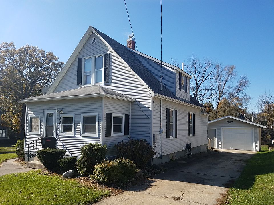 Nice 2-3 bedroom 2 bath home with many updates. New shingles being installed on house & front garage. New carpet in living room, office/BR & 2 upstairs bedrooms. New water heater 2018, new water line from house to road 2017, dining room floor refinished. 1st floor features an enclosed front porch, dining room, living room, kitchen, full bath & office/BR & a mud room that leads out to a deck & partially fenced yard w/above ground pool. Upstairs has a full bath & 2 bedrooms. There are (2) 1 car garages. Some vinyl siding is being replaced on house.