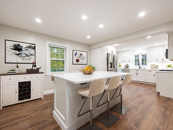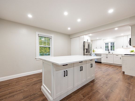 Welcome to this charming cape home set on nearly half an acre in the desirable town of Franklin. This property offers comfort and character throughout. The main level features a bright, open layout perfect for everyday living and entertaining. The newly renovated kitchen features soft-close cabinets, stainless steel appliances, and an island designed for entertaining. The spacious living room features a fireplace with a wooden mantel and closet storage. The main floor full bath has been fully renovated and features a tiled shower and black fixtures. Upstairs you will find two spacious bedrooms with ample closet space and storage, along with a fully renovated half bathroom. Enjoy outdoor living on the patio surrounded by nature, just moments from nearby conservation trails and Fairmount Fruit Farm- a perfect blend of convenience and tranquility. The third bedroom on main level was removed to expand living area and can be converted back. Great condo alternative, come check it out today!