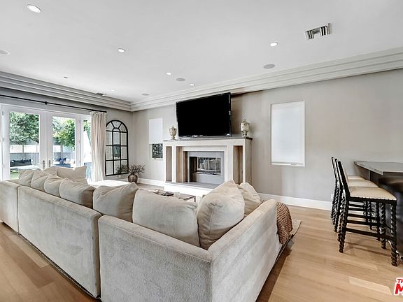 Contemporary Masterpiece! This contemporary dream home features a great-for-entertaining floor plan, grand living room, wet bar w granite counter-tops, & Venetian plaster finished wall fireplace. Formal dining room leads through the butler's station into a professional Chef's kitchen, large center island with sink, stainless steel appliances, custom made cabinetry, 32-bottle wine refrigerator, walk-in pantry, & breakfast area. The first floor also features a large bedroom suite & a luxurious venetian plaster powder room. Glide up the intricate modern staircase with designer railing to the second floor featuring three bedroom suites, including 2 Luxurious Master Suites with steam showers in white Carrera marble, bubbling spa tubs with massaging jets, state-of-the-art bidet toilets, custom made hardwood cabinets, designer sinks, boutique walk-in closets, and fireplaces. Expansive outdoor entertaining area, complete with cabana-style sitting area and lushly landscaped backyard. Enjoy the lifestyle of Melrose, West Hollywood, Beverly Hills, and Sunset Strip!