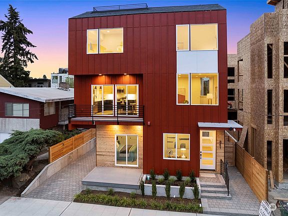 Just released! Modern new construction community in Ballard situated on residential street close to Market St eateries and hot spots. Rated "Walker's & Biker's Paradise" with easy commute into the city. Comes with coveted off-street parking pad. Distinctive Scandinavian design features include a sleek, modern kitchen with gas cooktop, open concept living, dining area with wide plank hardwoods, plenty of floor-to-ceiling windows for max natural light, and ultra efficient cove heaters and mini splits for year round comfort. Entry level has a convenient flex/office space, full bath and bedroom with private deck. Lofty upper level primary vaulted suite has access to rooftop retreat with mountain views. Slated for Built Green Cert. No HOA dues!