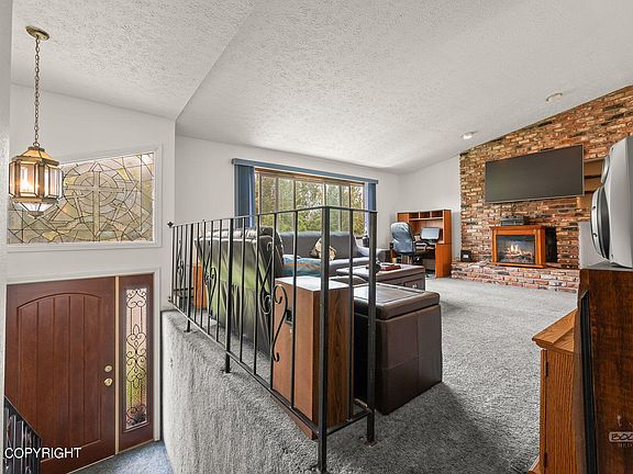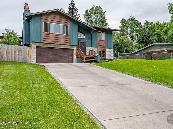Great commute location, close to JBER, UMED and easy access to downtown Anchorage. Huge front yard, private fully fenced back yard and boarders the Ptarmigan Elementary School walking path. Updated kitchen with Hickory cabinets, full subway tile backsplash and new laminate flooring. Vaulted living room features a wood burning fireplace with floor to ceiling brick surround. Two bedrooms and fullbath on the main floor. Large bedroom and full bath on the lower level. Other updates include, newer vinyl windows, newer on-demand boiler, and rear deck replaced in 2012.