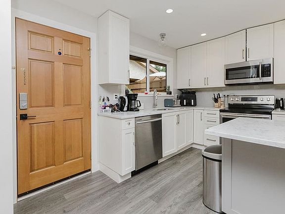Nicely updated kitchenTwo patio spacesPrivate fenced yardCovered pergolaCovered carport