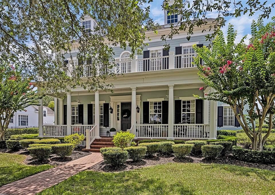 Welcome to your dream home in Disney's Celebration, Florida! This classic custom ISSA-built estate is perfectly positioned next to a vast park, offering not just a home but a lifestyle. As you step onto the charming brick porch and enter through the grand foyer, you are greeted by a library with built in shelving and an elegant dining room, each detailed with layers of crown molding and wainscoting. Recent upgrades include a newer roof and three air conditioners, blending classic charm with modern convenience. The first-floor master suite provides a sanctuary of privacy with its separate commode and bidet, plus a bonus area with delightful pool views. There is an additional first floor bedroom for guests, or nanny. Culinary enthusiasts will revel in the kitchen, featuring dual sinks, a six-burner gas range with griddle, ice maker, and a butler's pantry that makes entertaining a breeze. The upper level is an entertainment paradise with a game room/loft/theater, perfect for movie nights or cheering on your favorite team. It houses three generously sized bedrooms, two full bathrooms, and a large storage room that could transform into a fun bunk room. Outdoors, the estate shines with its mature landscaping including lime and lemon trees, and a beautiful poolside kitchen equipped with top-tier appliances. A three-car garage with a built-in workshop and a ONE-BEDROOM APARTMENT above offers versatility and convenience, complemented by an extra-long driveway providing plenty of parking. This home is not just a place to live but a space to create lasting memories.