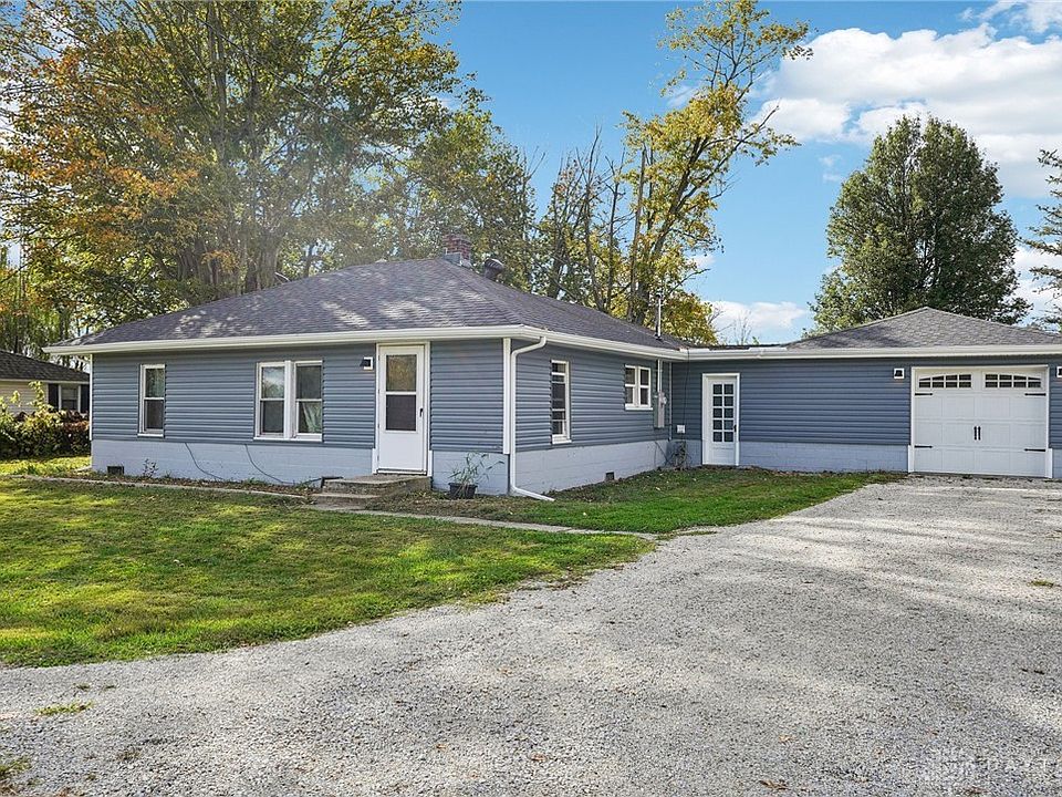 Ranch home nestled in a country setting on a spacious half-acre lot. This home features two comfortable bedrooms, one bathroom, living room, kitchen and a bonus room that can be used as a dining area or family room. An added bonus is the 1 car attached garage that is spacious enough to be considered a 2 car garage. Plenty of room for storage and a new garage door and opener has been installed in 2025. The property boasts numerous updates completed in 2025, including a new panel box and breakers, a brand-new roof, gutters, siding, exterior electric fixtures, and soffit. Embrace the privacy of country living and call this home today.