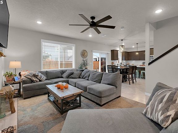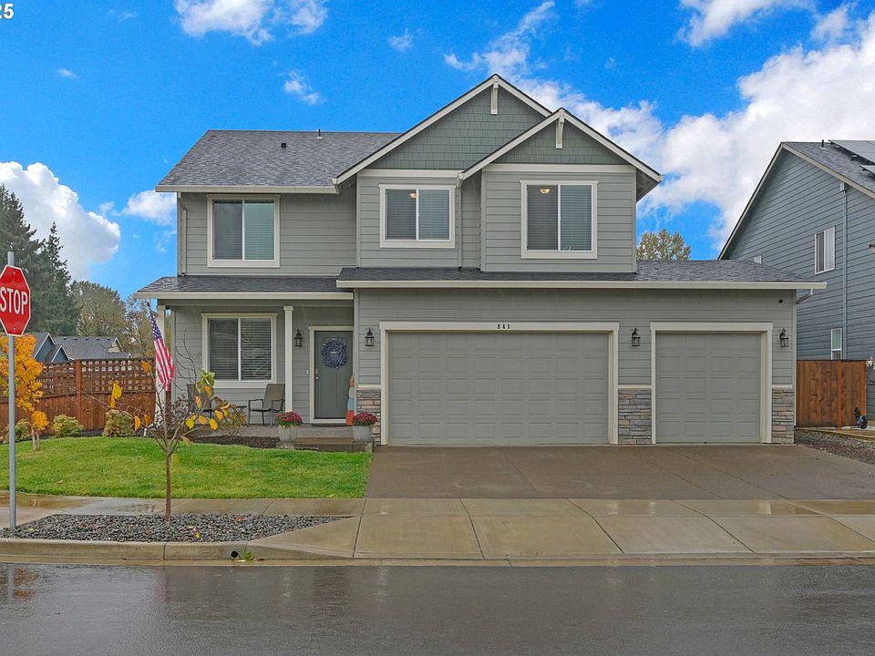 Open house 11-9-2025. This is a special home in the Rivers Edge subdivision. Better than new with updates and upgrades already in this 2021 home! Rare 3 car garage on corner lot for lots of space! High ceilings and large windows draw in lots of light. The spacious living room with cozy gas fireplace connects to a large and open kitchen with quartz island, and rich, dark cabinetry and stainless appliances and great pantry. A den on the main level offers options. Upstairs you'll find 4 large bedrooms, including a luxurious primary suite with a relaxing soaking tub and huge walk in closet. There is so much to love about this home, located in historic Brownsville near the river, and offering close freeway access for an easy commute to Eugene, Albany, Corvallis and much more. You don't want to miss this opportunity!