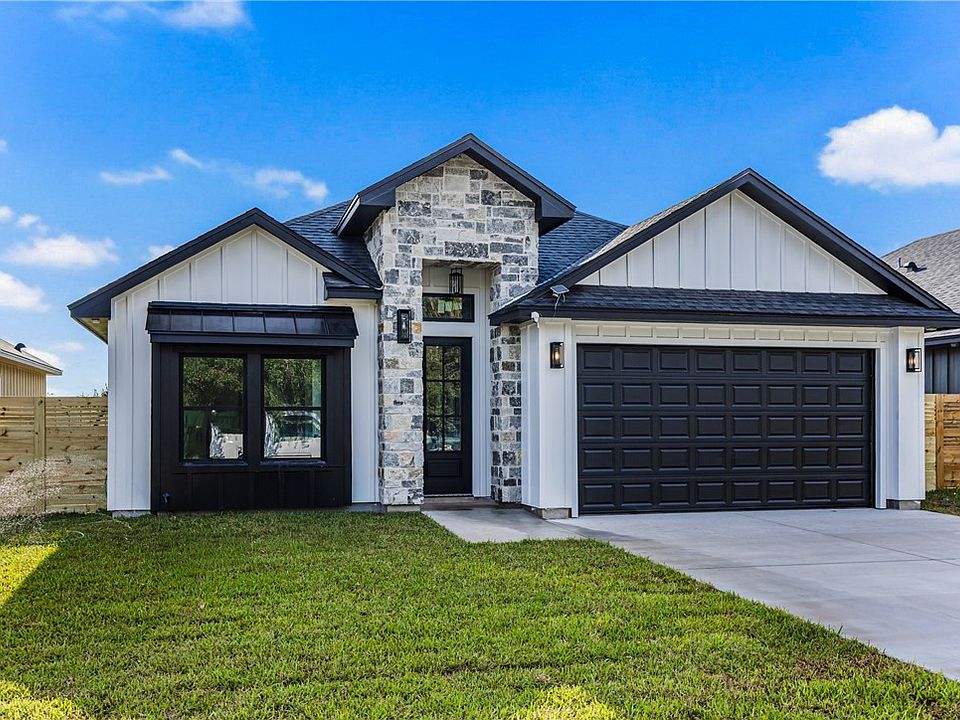 Showcasing natural Texas stone, modern black-framed windows, and a standing seam metal roof accent, this home harmonizes timeless materials with contemporary architecture. Perfectly situated just minutes from local dining, shopping, marinas, and coastal recreation, Conquer Homes invite you to experience luxury without limits—where modern design meets coastal freedom.