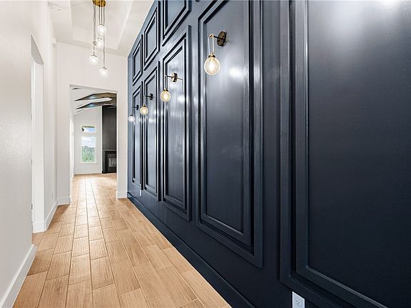 From the moment you step inside, a moody accent foyer illuminated by artisan sconce lighting sets an ambiance of quiet luxury—an introduction to the thoughtfully curated details that define this home.