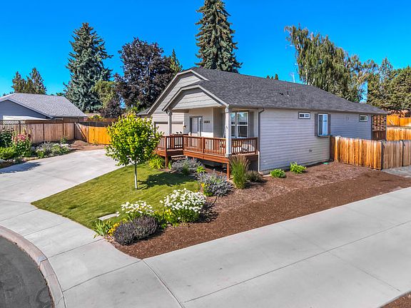 This single level 3bed/2bath home on .20 of an acre lives large! The cul-de-sac setting brings ease of access with minimal traffic. Easy walk to nearby American Legion park, The Canyon walking path, grocery & shops. Touches include hard surface countertops in the kitchen, single basin sink, laundry room, covered entry and deck, 3rd bay garage and behind the gate toy/RV storage with 18x21 metal roof/frame boat cover. Great location in SW Redmond. This open floor plan is great for entertaining. Gas fireplace in the great room for those colder days. Nice master with separation from the other guest bedrooms. Nicely landscaped with drip system and fully fenced.