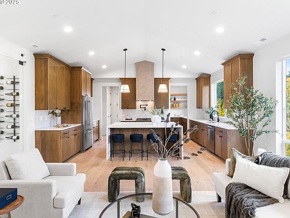 Welcome to this beautifully designed new construction home from a distinguished Street of Dreams builder in one of Gresham’s most desirable emerging neighborhoods. With 5 bedrooms and 3.5 bathrooms, this thoughtfully laid-out home offers modern style, flexible living, and quality finishes throughout. The light-filled main level features an open-concept floor plan with high ceilings, a spacious living area, and a stylish kitchen complete with stainless steel appliances, solid surface countertops, a large island, and sleek cabinetry. One of the bedrooms is ideal as a home office or flex space, perfect for today’s hybrid lifestyles. The primary suite is located on the main floor and includes a walk-in closet and private en-suite bath, creating a peaceful retreat. Step out onto the covered balcony and enjoy picturesque views of surrounding trees—ideal for morning coffee or evening unwinding. An attached 3-car garage offers easy access, day-to-day convenience, and plenty of extra storage for vehicles, tools, or recreational gear. Located just minutes from major conveniences, you’ll enjoy quick access to Gresham Station Shopping Center. Dine at local favorites like Boccelli’s Ristorante, Asian Thai Bistro, or grab a sweet treat at Sugar Cubed Bakery. Start your day at nearby Café Delirium, or enjoy a round of golf and scenic views at Persimmon Country Club, just a short drive away. Explore green spaces like Nadaka Nature Park or Main City Park for weekend recreation. With brand-new systems, a builder warranty, and a move-in-ready finish, this home combines modern comfort, functionality, and a fantastic location.