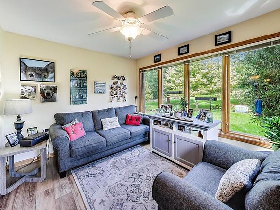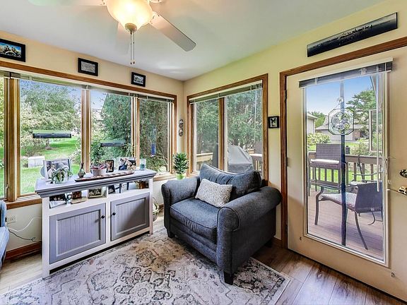 Built completely around the lifestyle and needs of a 55+ population, this home meets Universal living standards in an artful way. Hallways and doorways are 32-36" wide and make this property super easy to move around with ease for all mobilities. Elevated oven, dishwasher and laundry facilities make chores effortless.  ZERO steps in this home - except to the FULL Basement. Plumbing rough-in makes adding an additional bathroom  a breeze.  You'll love the SUNROOM of this home - peering directly into the common and open ground of this small community. Courtyard in the empty lot nextdoor adds to the WOW factor of this unique and fabulous setting.  Major updates include 2025 Roof, 2025 Central Air Conditioning, 2021 Hot Water Heater, Quartz counters in the Kitchen, 2021 Washer and Dryer and new stovetop and oven.  This home was built with comfort, convenience, and accessibility in mind. Come and see for yourself why this thoughtfully designed home is perfect for your next chapter of life!